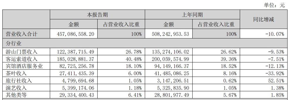 峨旅股份公司交易收入组成。图表开端于峨旅股份公司半年度讲演