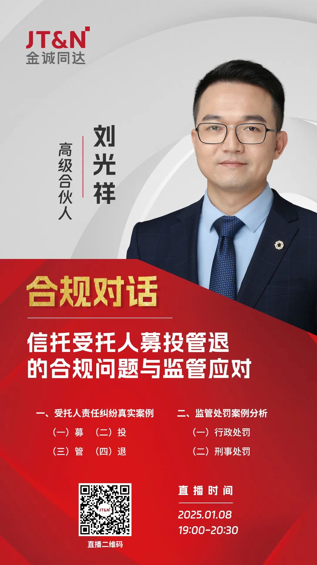 卖方机构合适性义务如何推行、销售机构未推行合适性义务时受托东说念主是否承担连带背负?信赖公司如何合规投资、如何认定信息流露义务和见告义务是否已充分推行?委派东说念主知情权的范围如何笃定、一东说念主推动是否承担连带背负?……愿与诸位同仁一齐,从本次《信赖受托东说念主募投管退的合规问题与监管应答》的共享与探讨中,探寻这些问题的谜底。